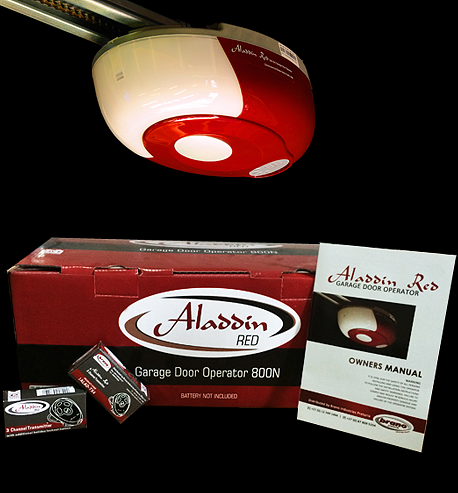 Aladdin Red is supplied and installed with battery backup and two four button remote control. This operator is an 800 Newton chain driven door operator and offers a holiday lock out via the remote controls. Additional safety beams may be fitted together with a wired wall control switch.